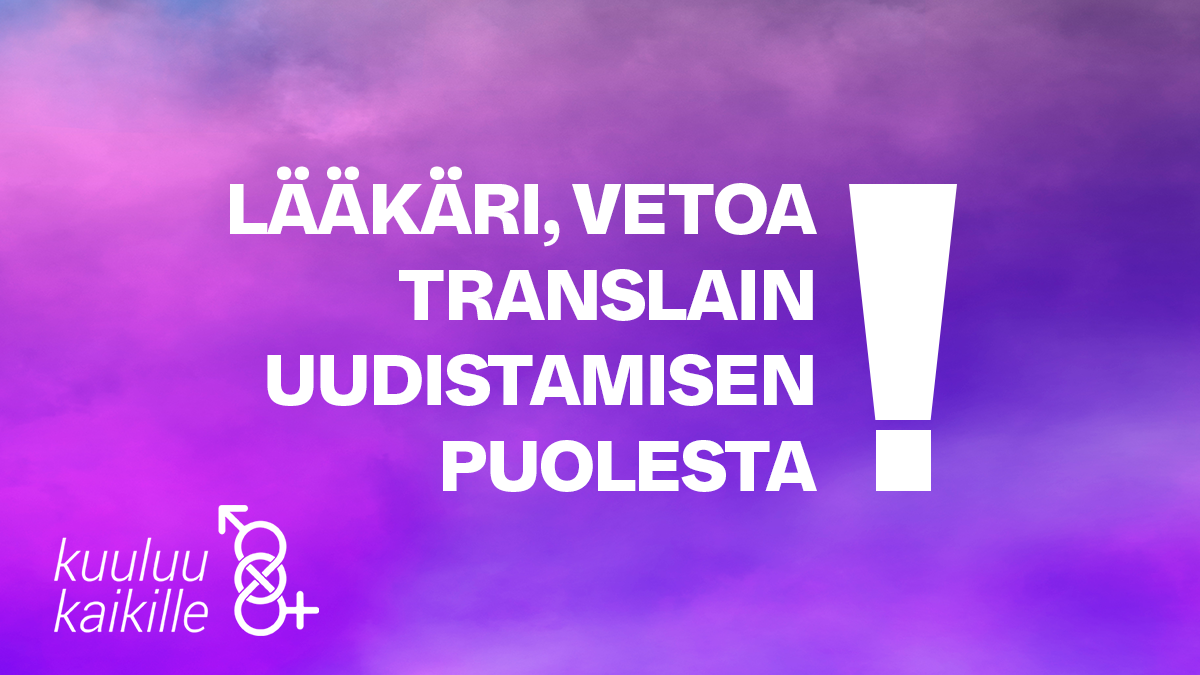 Kuuluu kaikille -translakikampanja kutsuu tammi-helmikuun aikana lääkäreitä allekirjoittamaan vetoomuksen translain uudistamiseksi.