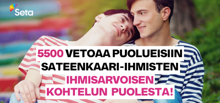 Ihmisoikeusjärjestö Seta vetoaa 5500 suomalaisen kanssa eduskuntavaaleja käyviin puolueisiin sateenkaari-ihmisten ihmisarvon kunnioittamisesta. Vihapuhe sukupuoli- ja seksuaalivähemmistöjä kohtaan on lisääntynyt.