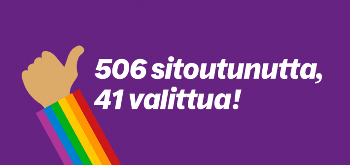 Kevään eduskuntavaaleissa Setan ehdokassitoumuksen allekirjoittaneista 41 valittiin kansanedustajiksi. Mukaan kampanjoimaan lähti vaalipäivään mennessä 506 ehdokasta eri puolueista. Seta onnittelee kaikkia valittuja ja vaalityön tehneitä ehdokkaita. Seta on kutsunut kaikki sitoutuneet […]