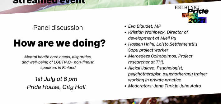 Seta´s panel discussion on Helsinki Pride week about mental health care needs, disparities and well-being of LGBTIAQ+ non-finnish speakers in Finland.
