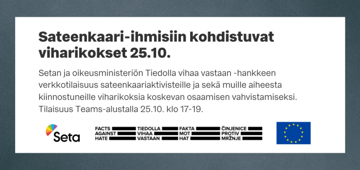 25.10. kello 17:00-19:00 Esittelyssä kampanja viharikosten ja vihapuheen tunnistamisen lisäämiseksi ja ilmoituskynnyksen madaltamiseksi