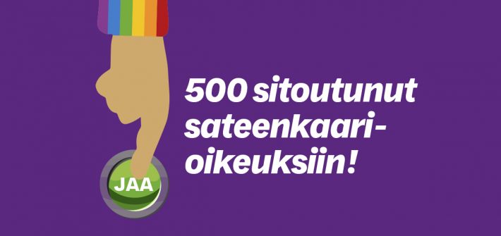 Eduskuntaan pyrkii 500 sateenkaarioikeuksiin sitoutunutta ehdokasta eri puolueista. Muunsukupuolisten ja intersukupuolisten oikeuksia parantavaa kolmatta juridista sukupuolivaihtoehtoa vaatii 483 kansanedustajaehdokasta.