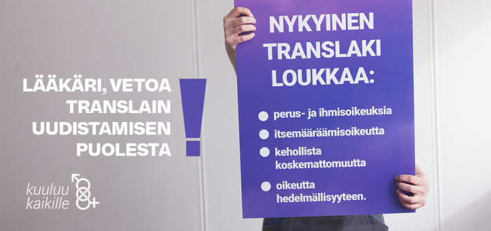 Translakikampanja kutsuu lääkäreitä vetomaan translain uudistamiseksi