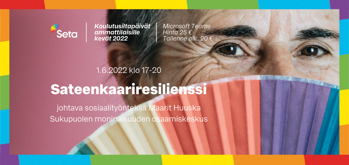 Koulutusiltapäivän 1.6.2022 teemana on sateenkaariresilienssi. Sateenkaari-ihmisten elämää usein kuvataan erityisten haasteiden ja vastoinkäymisten valossa. Resilienssi näkökulma usein unohtuu. Resilienssi tarkoittaa kestokykyä, kykyä kasvaa ja muita hyviä ominaisuuksia, jotka voivat vahvistua yksilöissä tai yhteisöissä haasteisiin vastaamisen seurauksena.